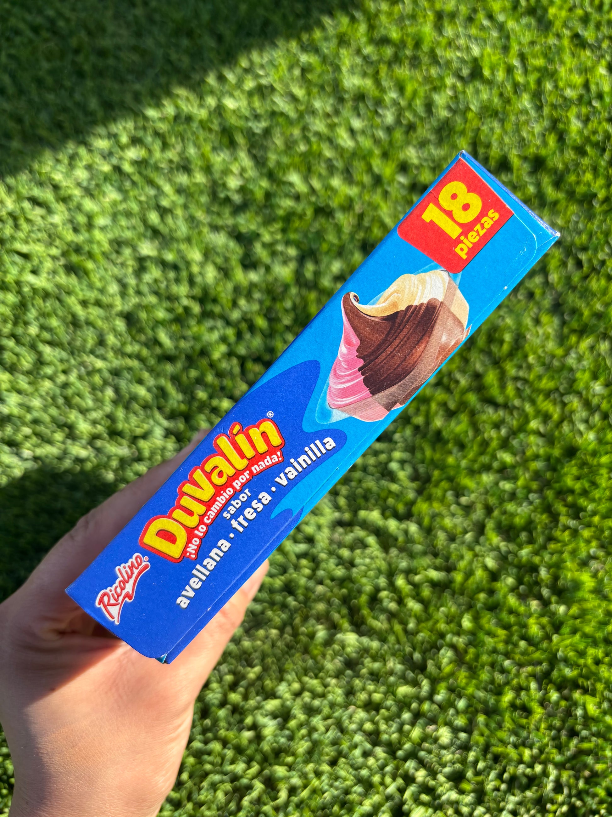 1 caja. Con 18 piezas. ricolino. Avellana/ fresa/ vainilla.